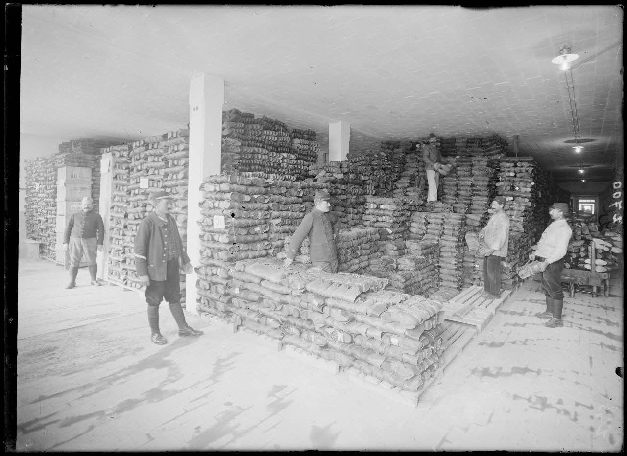 A l'usine exposition du matériel de guerre de Lyon (Z 681 à Z 700), de nombreux matériels utilisés par l'armée (campement, ustensiles, vêtements) sont stockés avant d'être reconditionnés ou réparés.