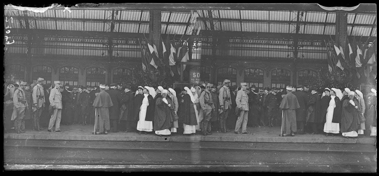 Lyon. Sur le quai de la gare les autorités attendant l’arrivée du train de grands blessés. [légende d’origine]