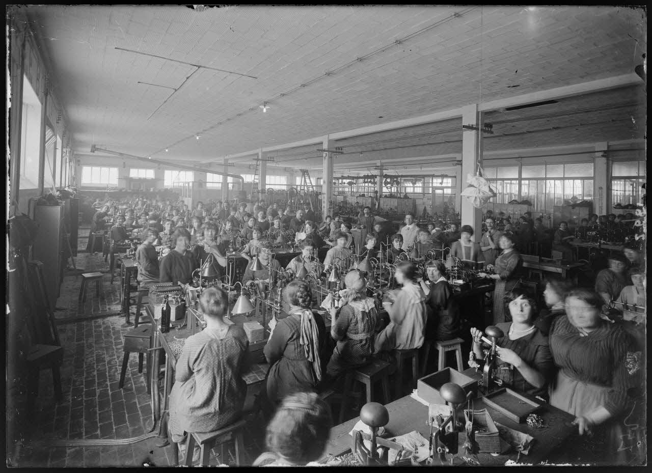 Lyon. Parc d'artillerie de la Mouche. Atelier de sertissage des cartouches de 75.