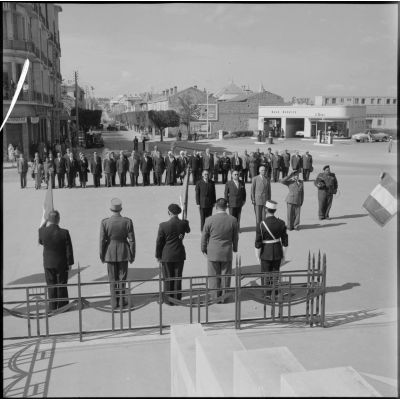 Salut aux drapeaux des associations d'anciens combattants pendant l'exécution de la Marseillaise, Sidi-Bel-Abbès.