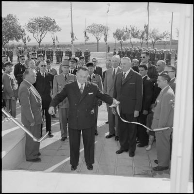 M. List coupe le ruban à l'entrée de la Maison du Légionnaire, Sidi-Bel-Abbès.