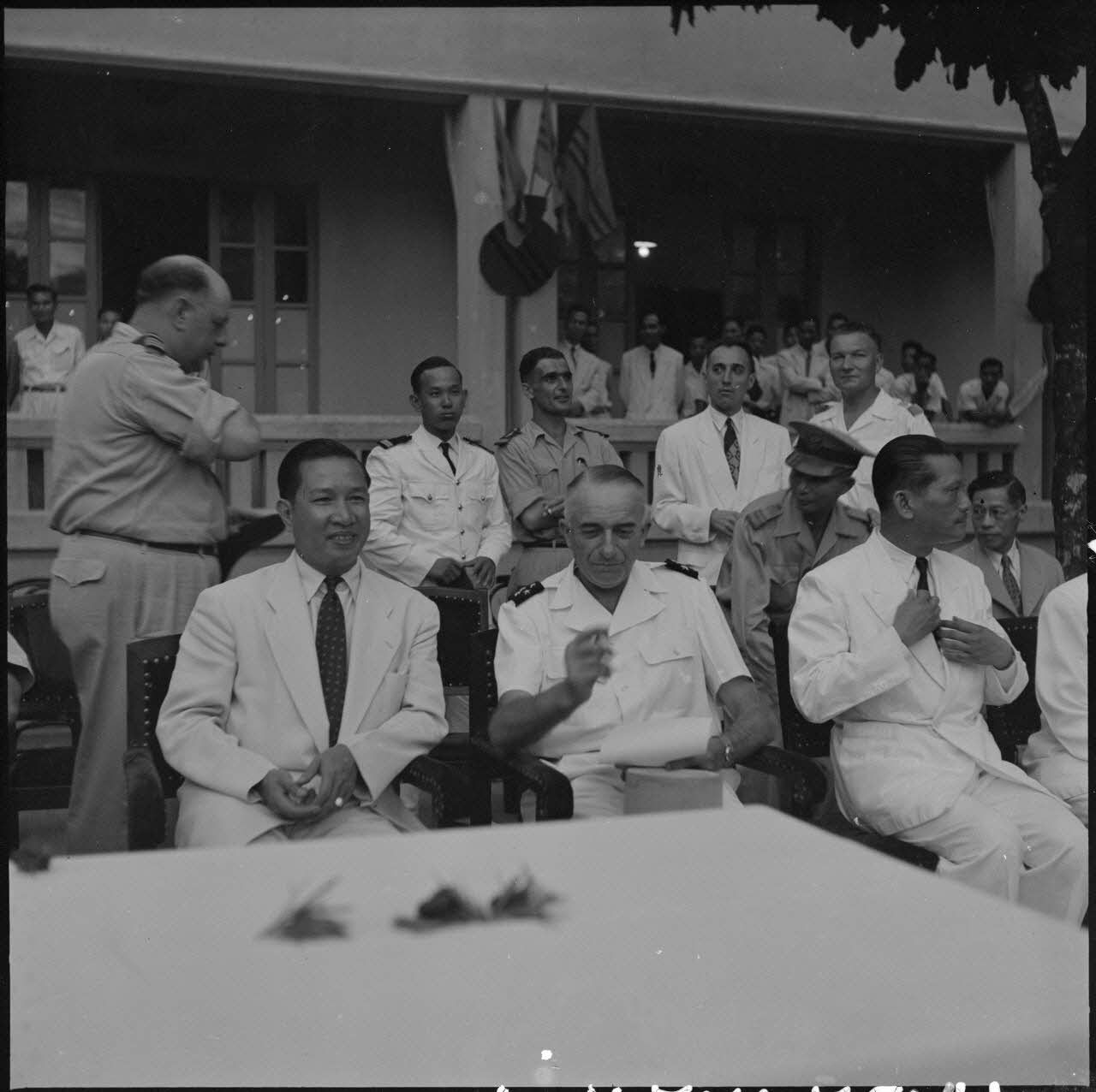 M. Pham Van Binh, le général de Linarès et le délégué du cabinet impérial M. Le-Thanh-Canh à la réception organisée en l'honneur des officiers vietnamiens de la promotion Hoang Dieu.