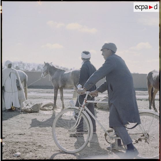 M'Sila. Souks hebdomadaires. Un homme à vélo.
