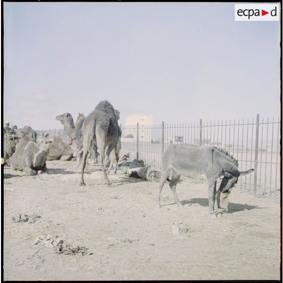 M'Sila. Souks hebdomadaires. Un âne et des chameaux.