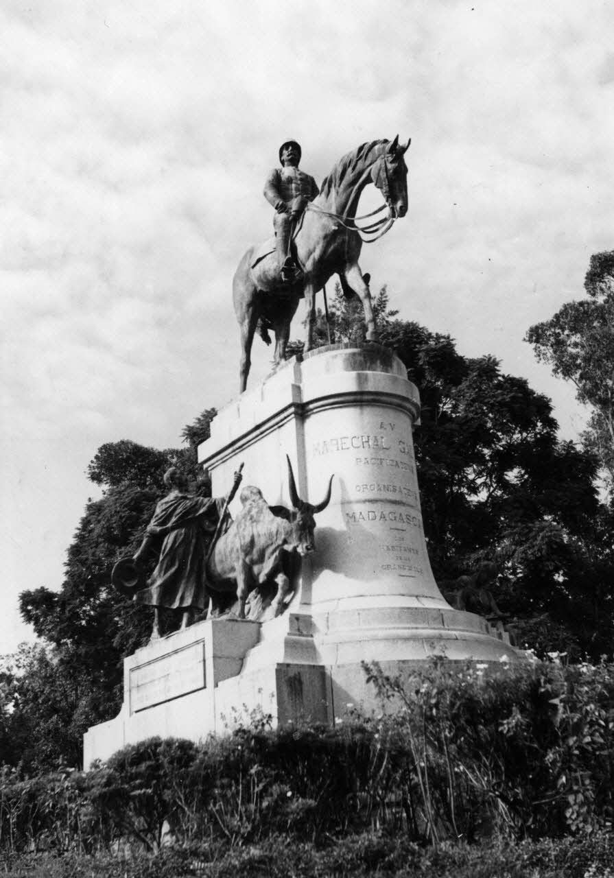 Madagascar. Tananarive. Statue du maréchal Galliéni (place Colbert), avant son déplacement en 1964.