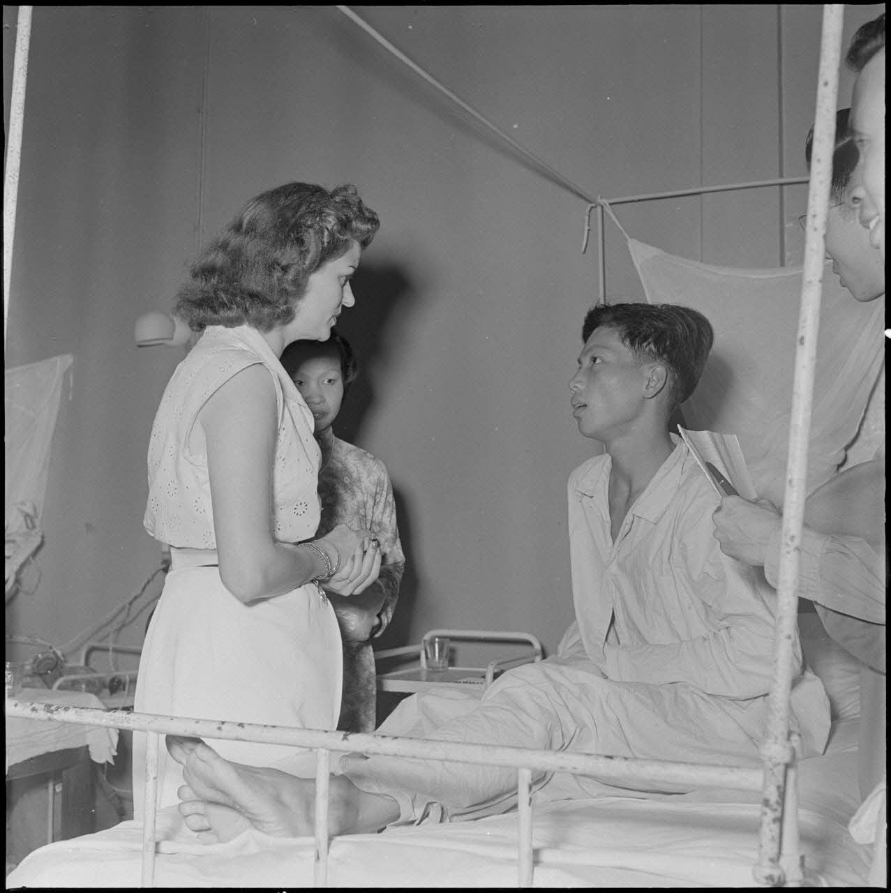Visite de Mme le général Nguyen Van Hinh aux blessés et malades de l'hôpital militaire Lanessan.