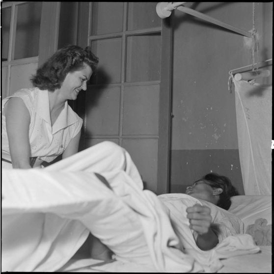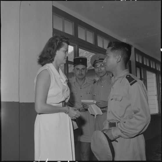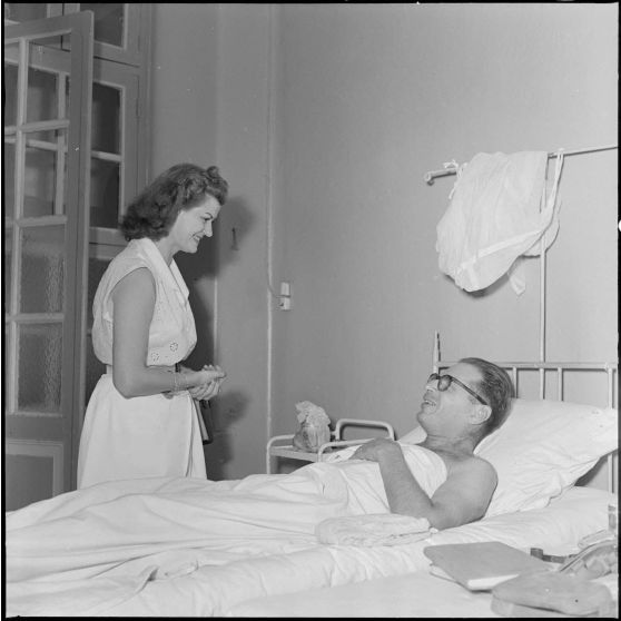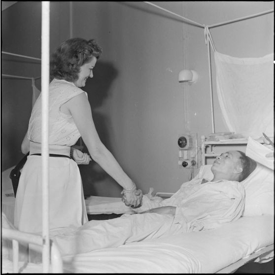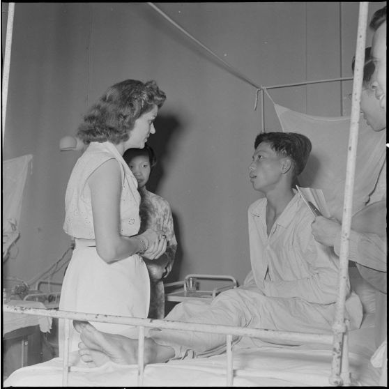 Visite de Mme le général Nguyen Van Hinh aux blessés et malades de l'hôpital militaire Lanessan.