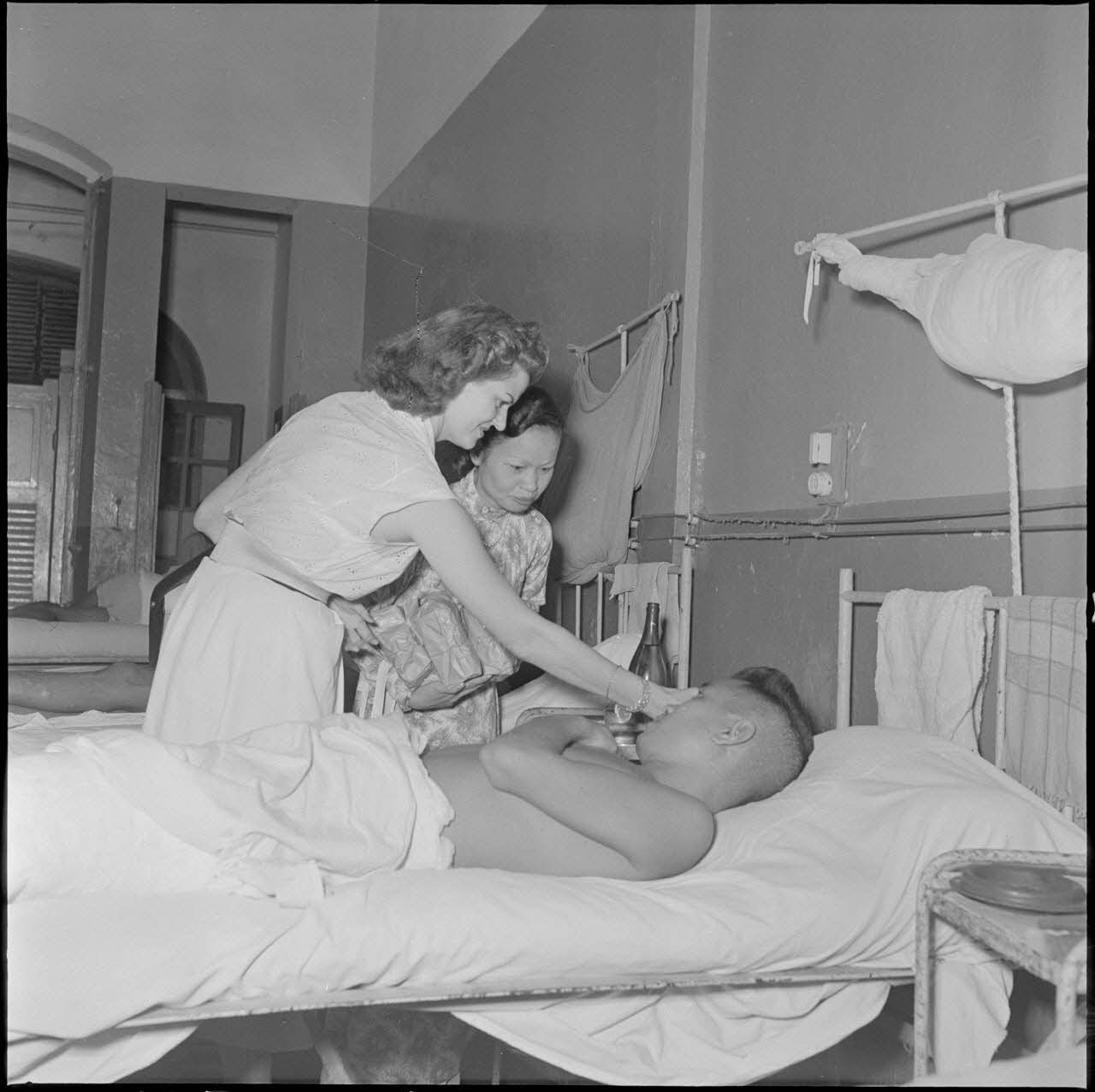 Madame Hinh rend visite à un soldat vietnamien à l'hôpital militaire Lanessan.