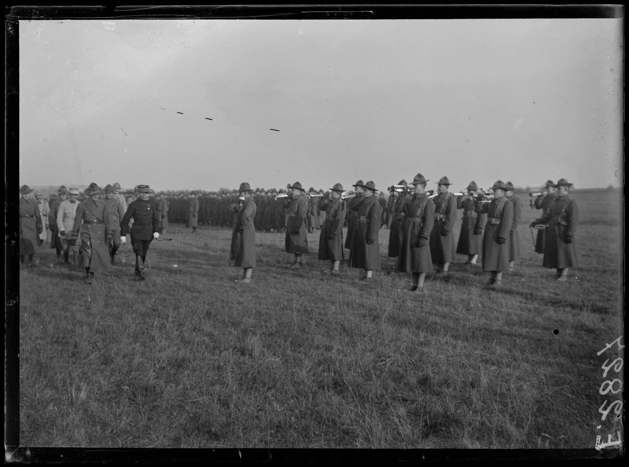 Mailly. Aube. Sur le champ d'aviation. Le général commandant l'artillerie de la 4eme armée passe devant les officiers.