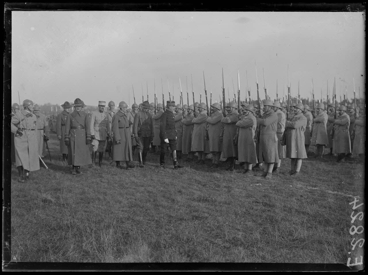 Mailly. Aube. Sur le champ d'aviation. Le général commandant l'artillerie de la 4eme armée passe devant les officiers.