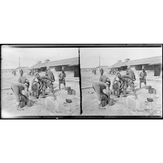 Mailly-le-Camp (Aube). Tirailleurs sénégalais à la fontaine.