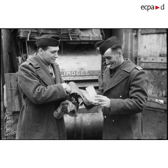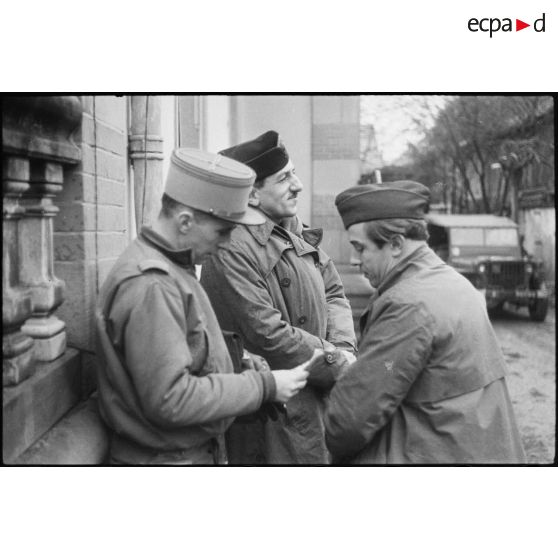 Officiers de la 2e DB au PC du sous-groupement Putz installé à Ehl (Bas-Rhin).