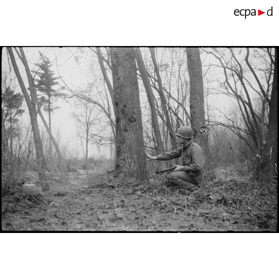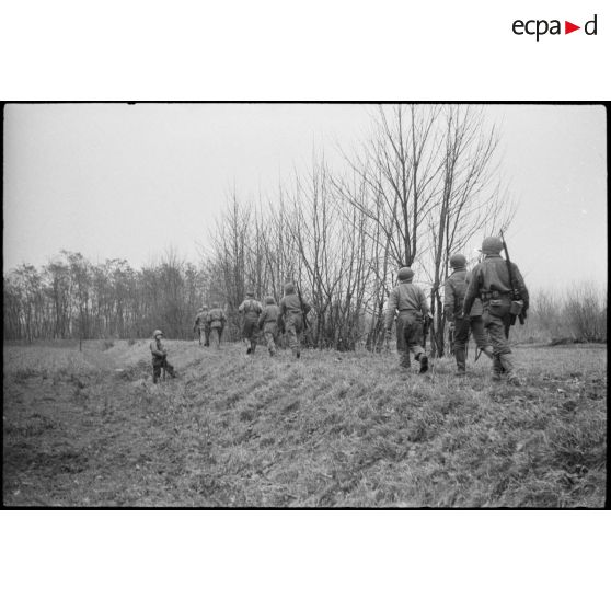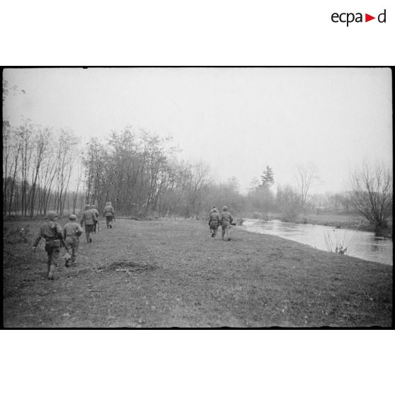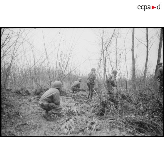 Une patrouille de fantassins américains à l'est de Sélestat.