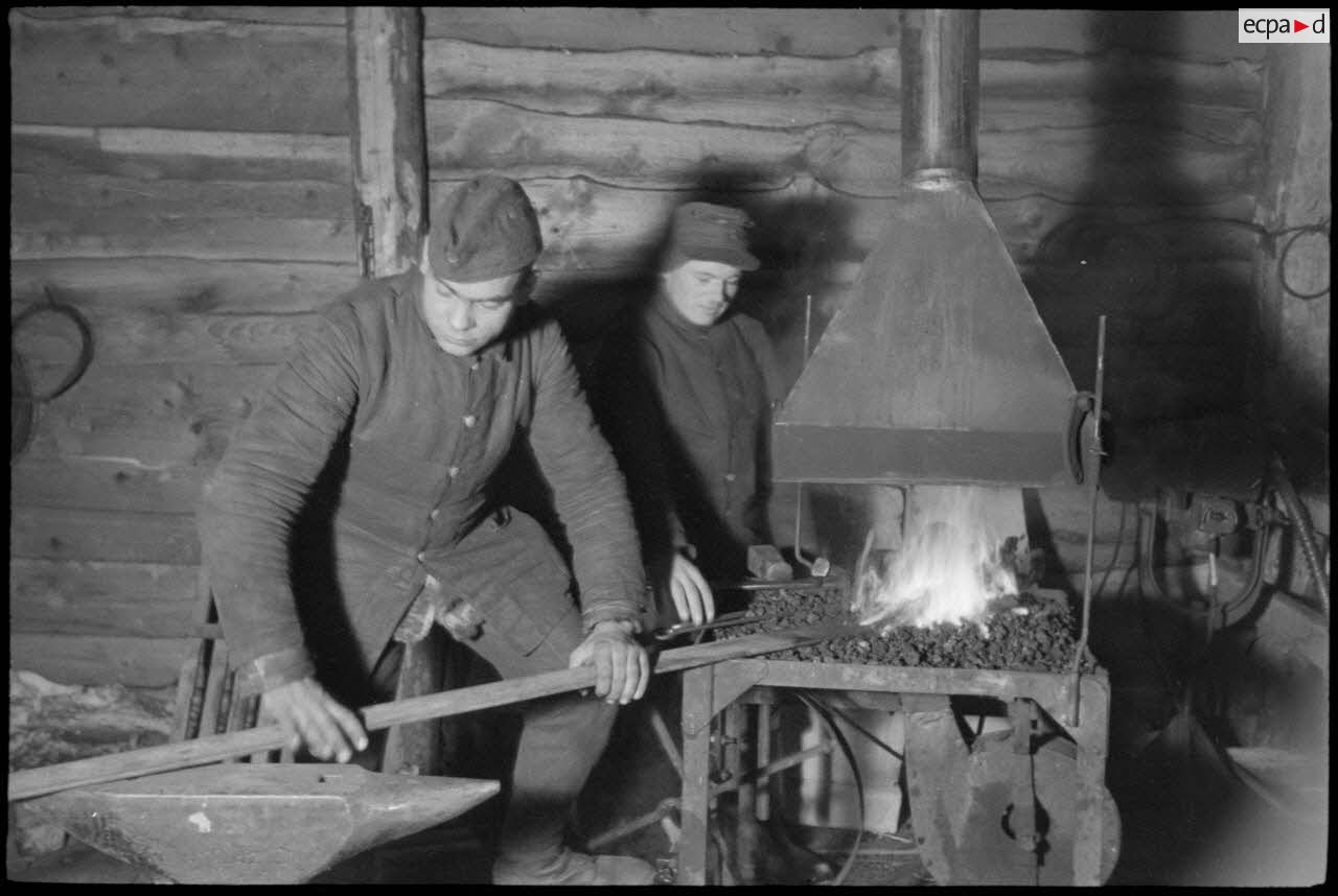 Maintenance de véhicules par des mécaniciens d'une Werkstatt-Kompanie.