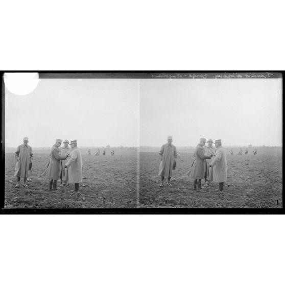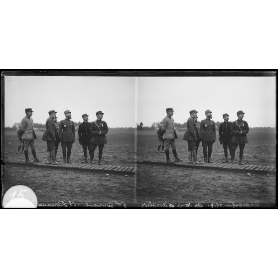 D193-2-15 Champagne 1914, au camp d'aviation, général Gouraud, commandant Féquand