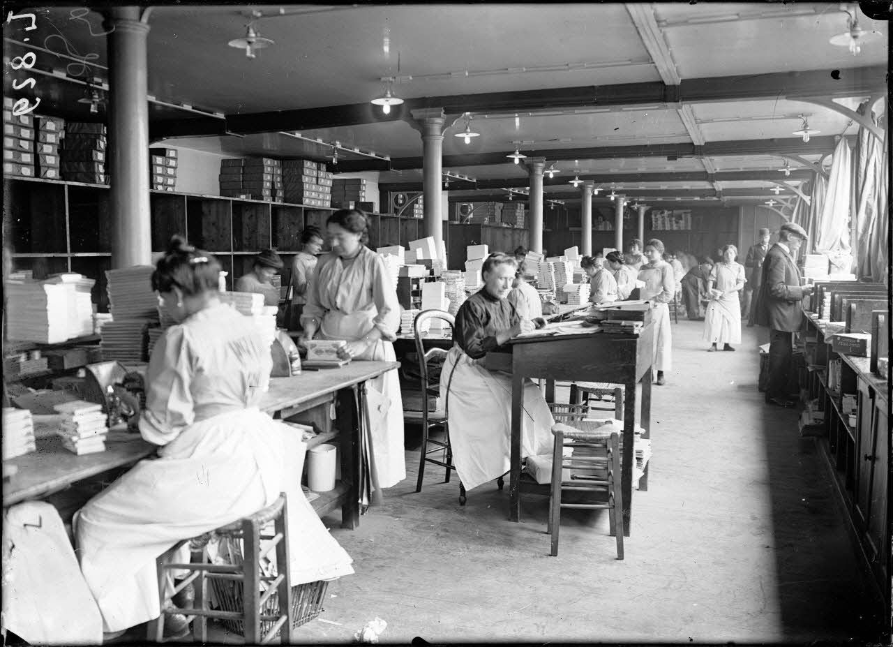 Maison Felix Potin. Usine de La Villette, rue de l'Ourq. Empaquetage du chocolat. [légende d'origine]