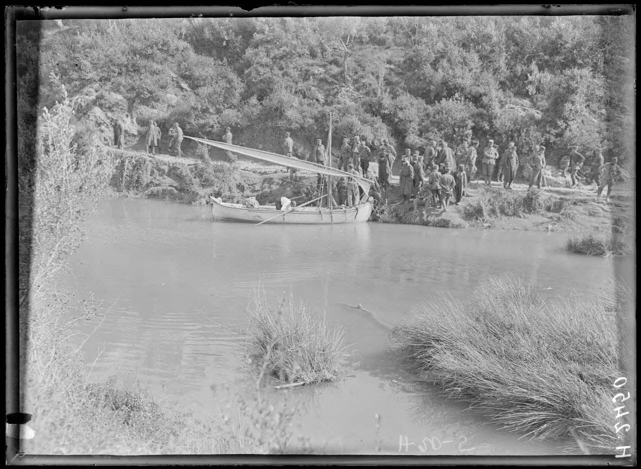 Maisonghi. Un coin de camp et barques de mercantis grecs sur la rivière Stronghili.