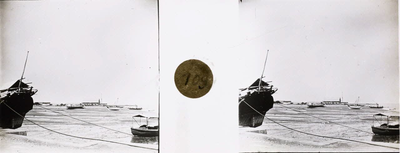 La pointe du Caïman à Majunga. Le bateau hydrographe "La Surprise".