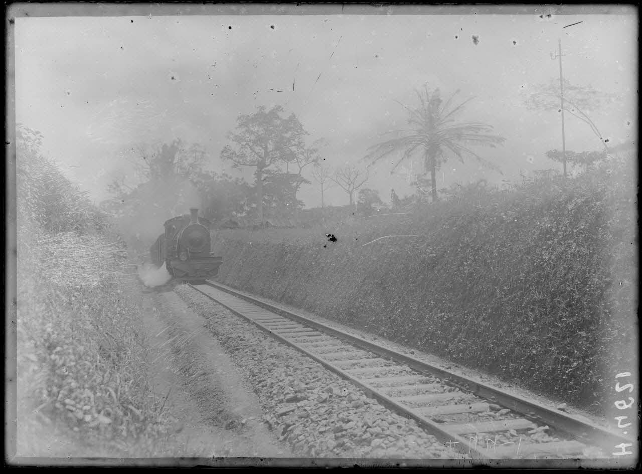 Makondo. Le train arrivant à la halte. [légende d'origine]