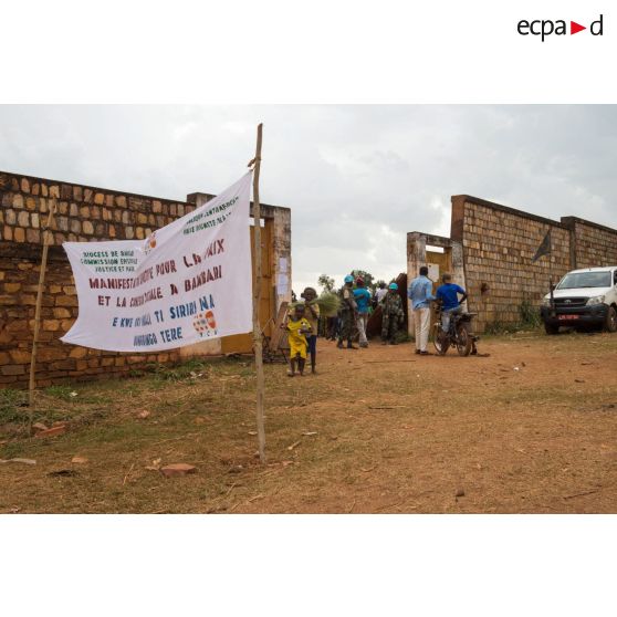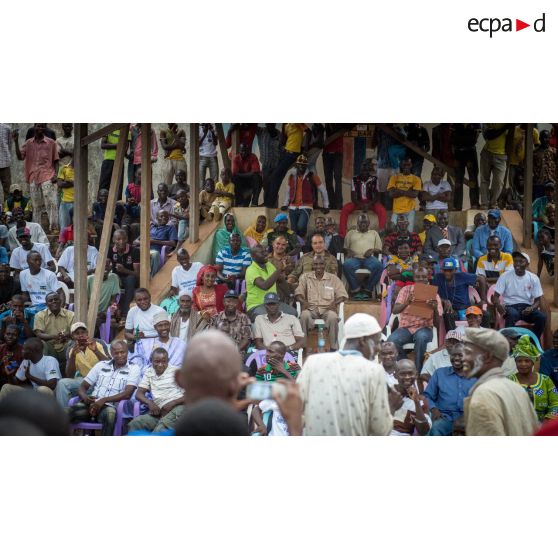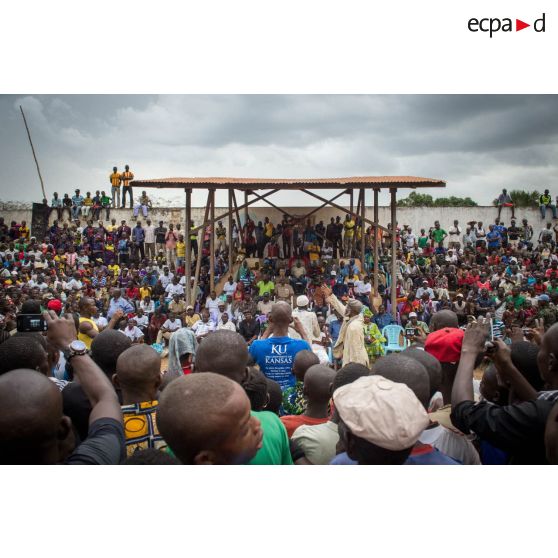 Population civile aux abords du stade de football de Bambari au cours d'une manifestation sportive pour la paix, lors de la journée internationale de la jeunesse.
