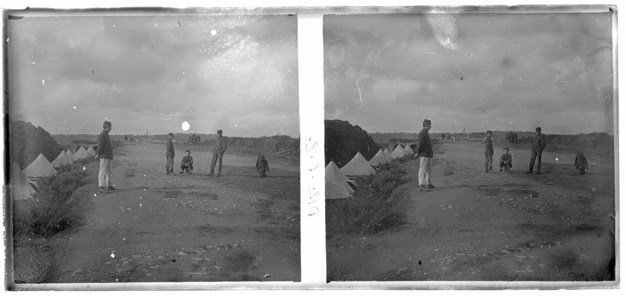 Archives photographiques du lieutenant Emile Coquibus affecté au 6e régiment d'infanterie coloniale (RIC) : loisirs et formation militaire (1906-1907). Après près de quatre années passées en Afrique, en Haute-Guinée (8 février 1901 - 16 janvier 1905), Emile Coquibus revient en France et suit plusieurs formations militaires. L'état de ses services indique qu'il a accompli un stage aux Etablissements Hotchkiss du 31 janvier 1906 au 16 février 1906. Affecté au mois de juillet 1906 au 6e RIC, il quitte ensuite cette unité le 24 mai 1907 pour rejoindre le 4e régiment de tirailleurs sénégalais (voir reportage D180-7). Le lieutenant Coquibus réalise une partie de ces photographies dans le Finistère lorsqu'il est cantonné à la caserne du quartier de Pontanézen, à Brest, au cours de l'hiver 1906-1907.