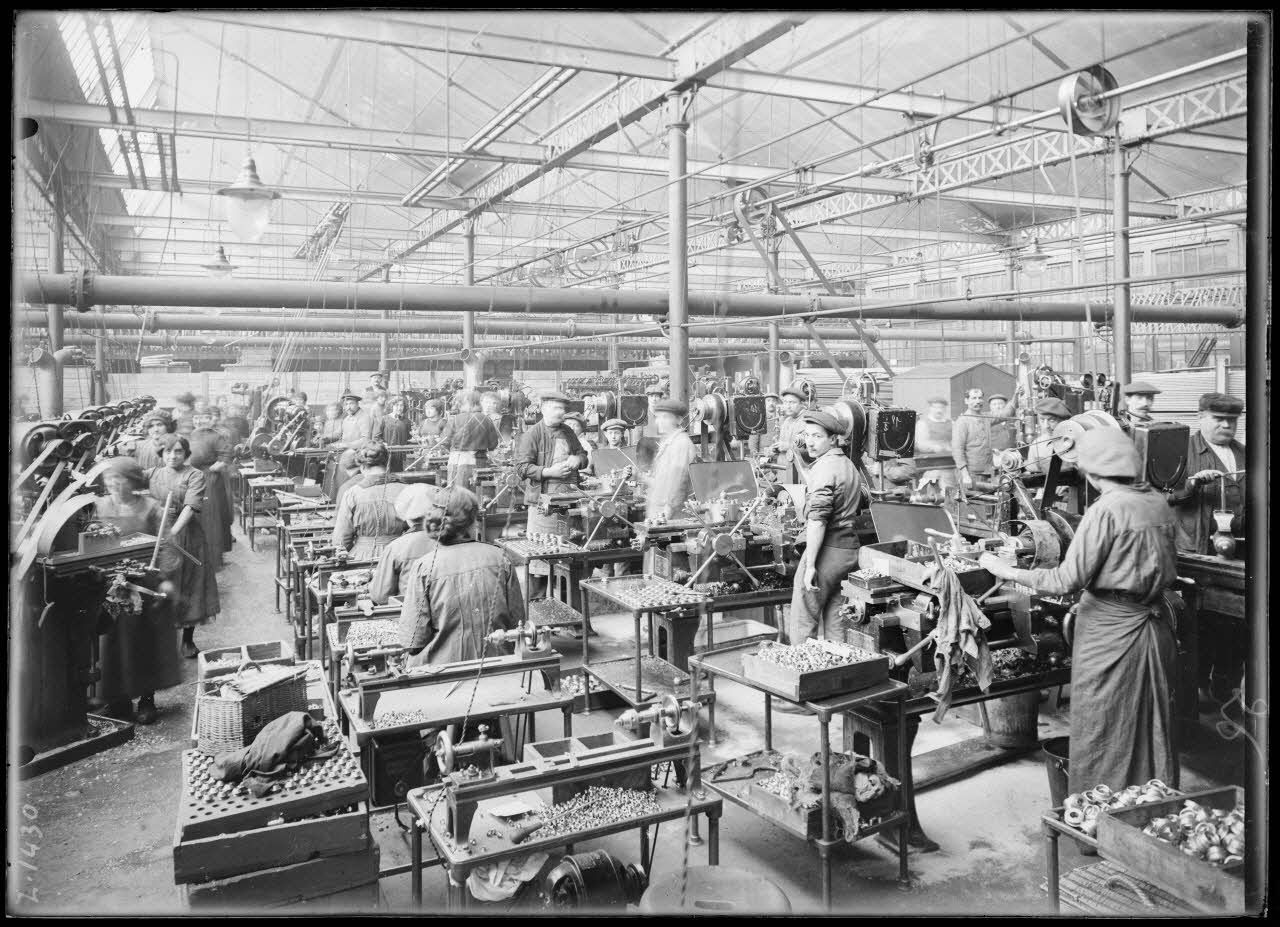 - A la manufacture d'armes de Saint-Etienne (Loire, janvier 1916, Z 1423 à Z 1434) des fusées d'obus sont fabriquées à la chaîne. (Z 1452 à Z 1459) : les gaînes relais sont construites.