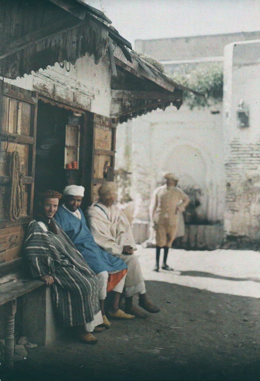 Marchands marocains à Mecknès (sic). [légende d'origine]