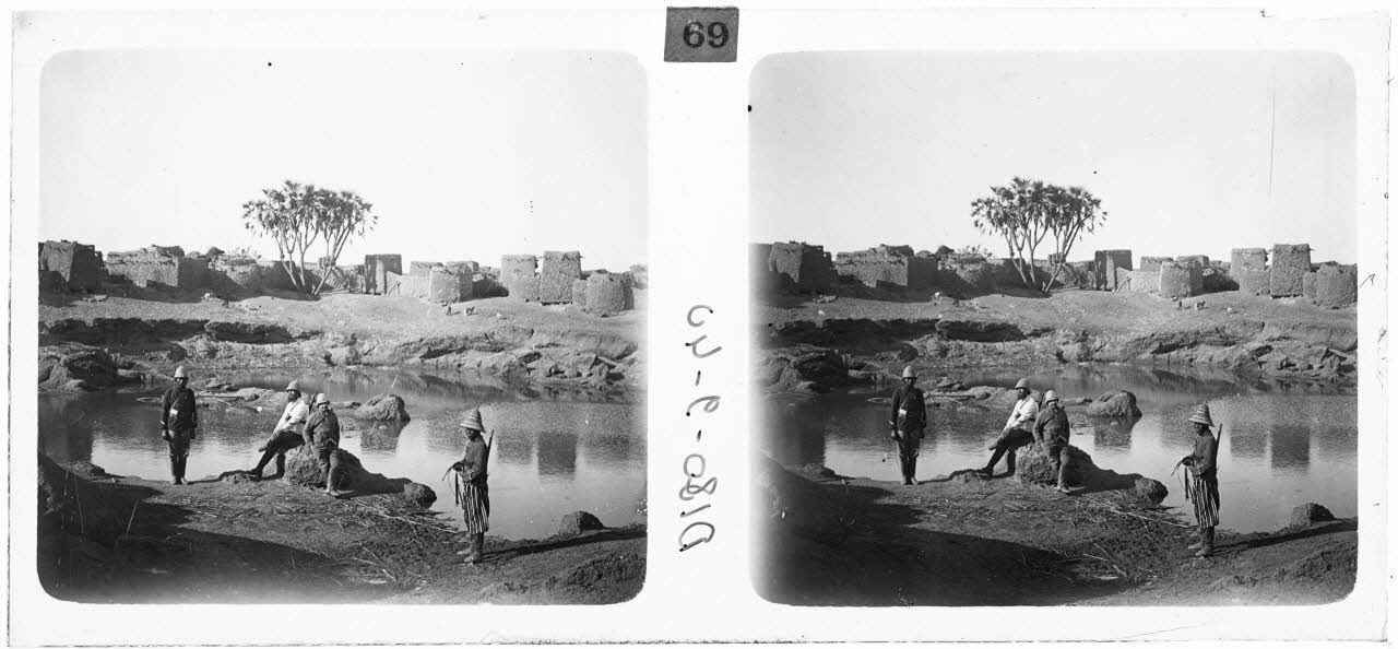 Mare devant Ouagessi, adjudant Bovier-Lapierre, sergent Desfeux, deux indigènes. [légende d'origine]