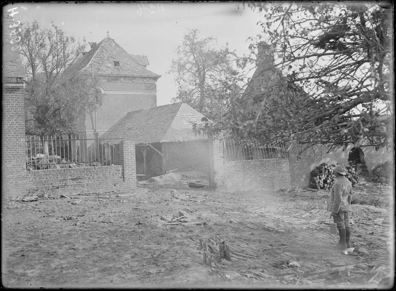 Dans la ferme sont entreposés un canon anglais de 8 "inches" et son tracteur ainsi qu'une pièce française de 305 mm sur VF (voie ferrée), en position de tir et des caisses d'obus de 75 mm. Le treuil d'une saucisse britannique est conservé à cet endroit.