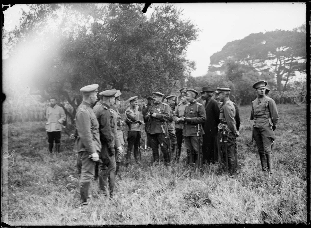 Marseille, au camp Mirabeau, les officiers des régiments russes qui viennent de débarquer. [légende d'origine]