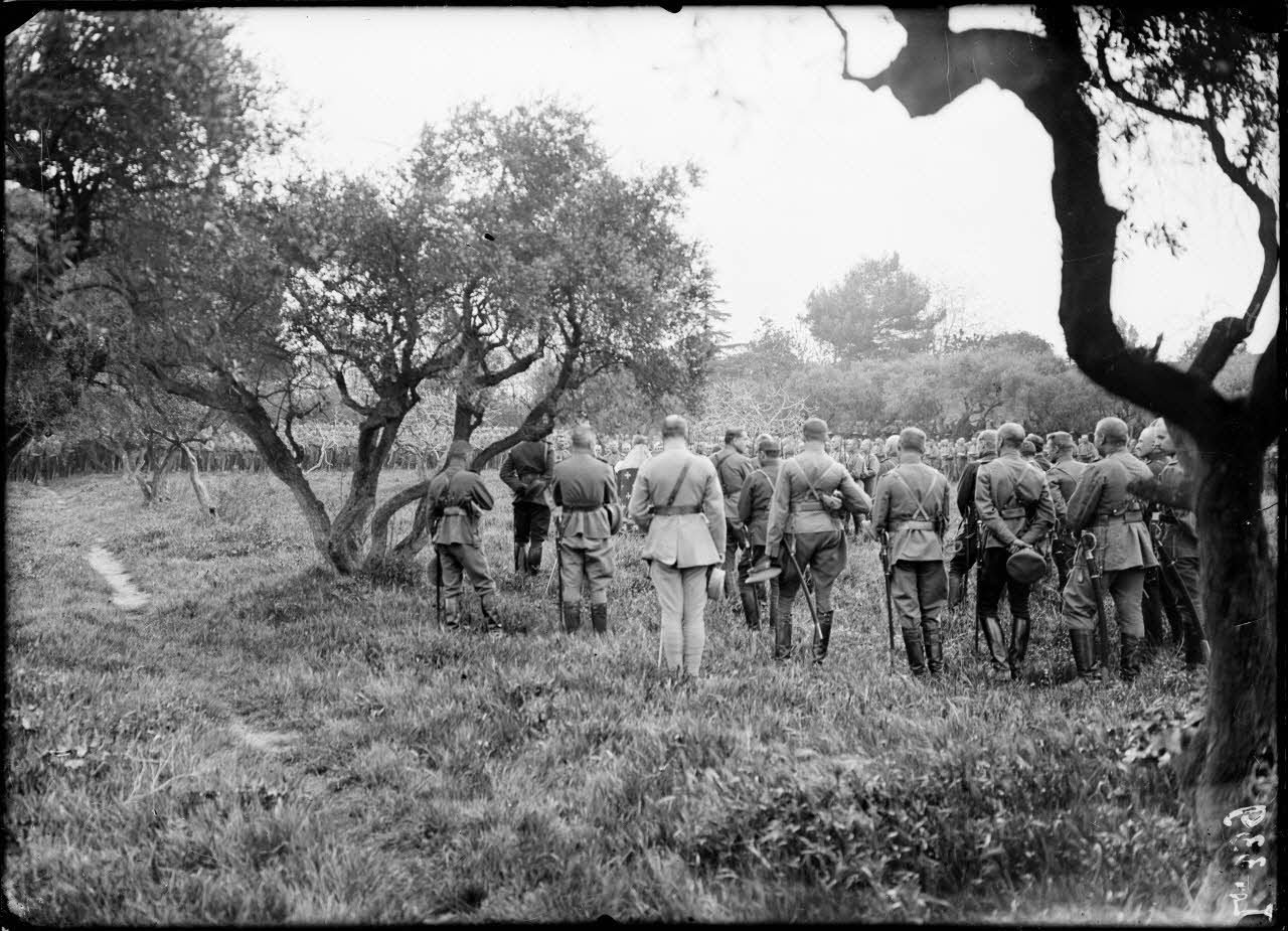 Marseille, camp Mirabeau, l'état-major pendant la cérémonie. [légende d'origine]