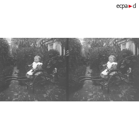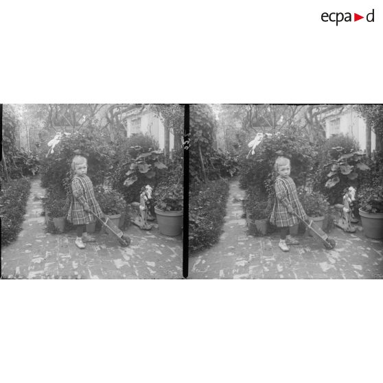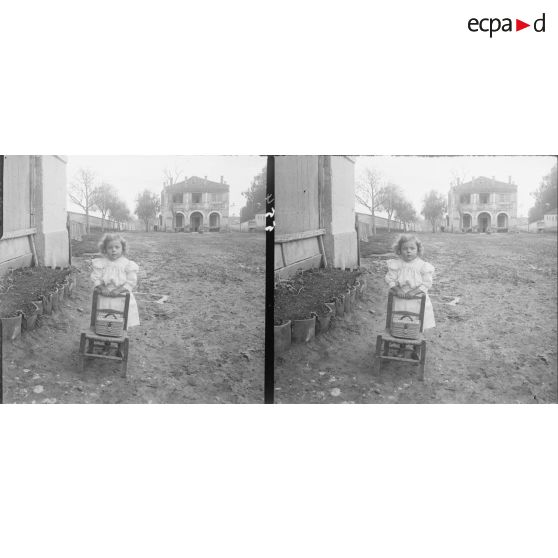 554. Germaine Hummel appuyée sur sa petite chaise.