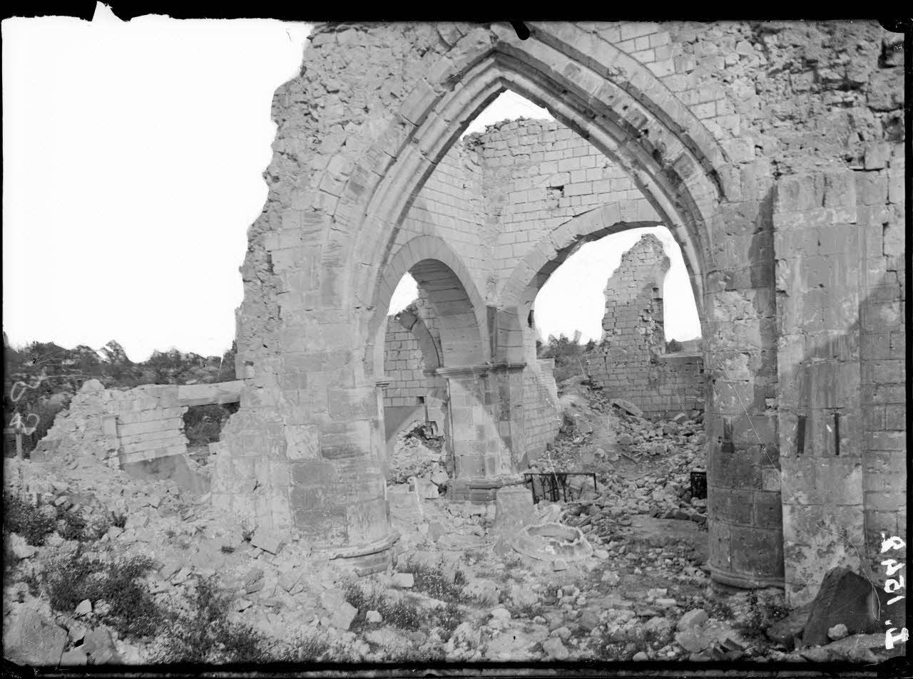 - à Vienne-le-Château : la tombe d'une femme fusillée par les troupes françaises (madame Méricoy ? SPA 27 L 1516), l'église et l'usine en ruines (SPA 27 L 1564), l'intérieur de l'usine en ruines (les ateliers détruits SPA 27 L 1569), la rue conduisant à La Harazée, la rue principale du village, la villa où était installé le commandement allemand ;