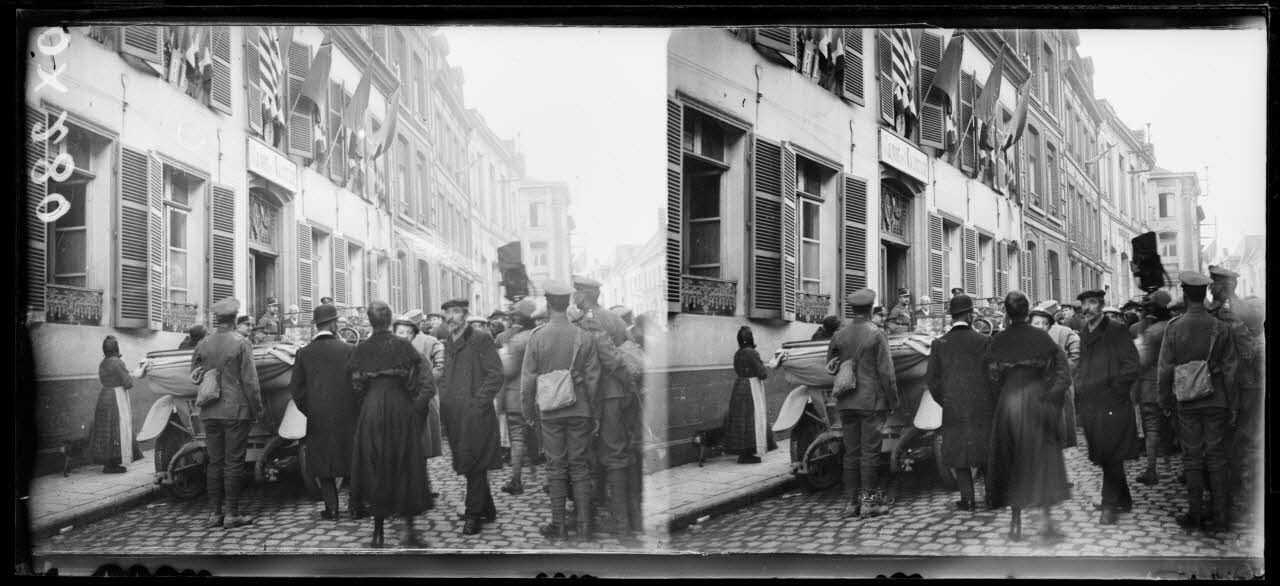 Maubeuge (Nord). Les habitants pavoisant et manifestant à l'occasion de l'Armistice.