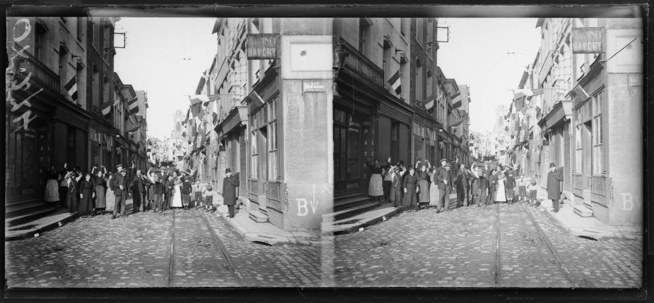 Maubeuge (Nord). Les habitants pavoisant et manifestant à l'occasion de l'Armistice. [légende d'origine]