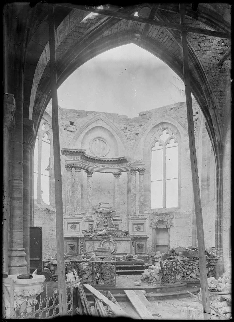 Maurupt (Marne). Intérieur de l'église. / Maurupt-le-Montois. L'église bombardée en septembre 1914. Le chœur. [légende d'origine]