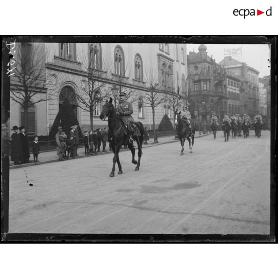 Entrée des troupes françaises et américaines dans les villes de Trèves, Mayence et Wiesbaden, en Allemagne, en décembre 1918.