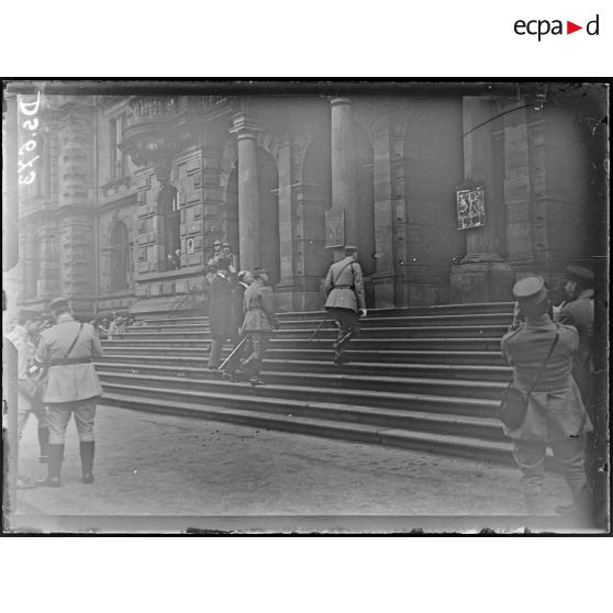 Wiesbaden (Allemagne). Le général Lecomte monte au Rathaus.