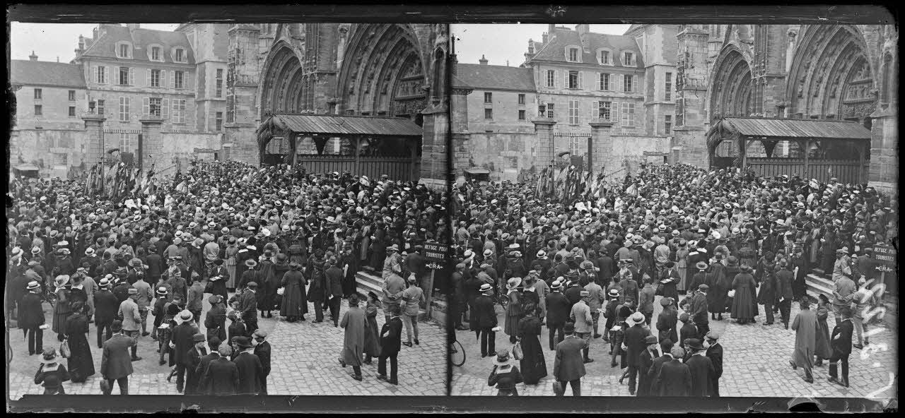 Meaux, Seine-et-Marne, anniversaire de la Marne. La foule devant la cathédrale. [légende d'origine]