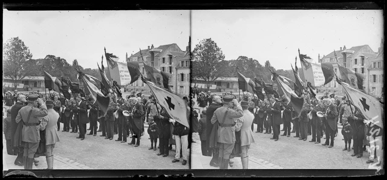 Meaux, Seine-et-Marne, anniversaire de la Marne. Les drapeaux des vétérans. [légende d'origine]