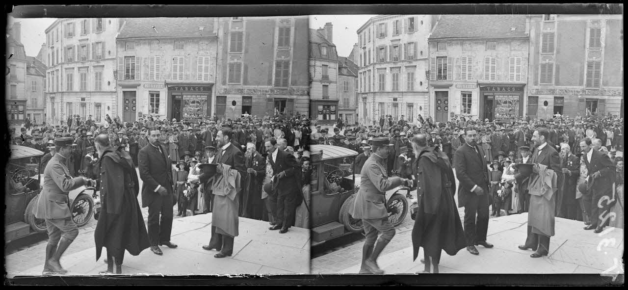 Meaux, Seine-et-Marne, anniversaire de la Marne. M. Dumesnil arrive à l'hôtel de ville.
