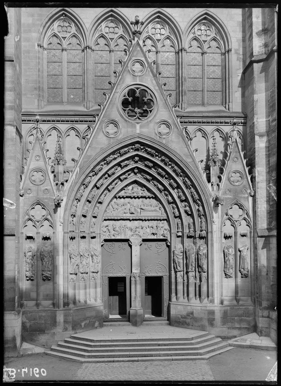 Meaux (Seine-et-Marne), la cathédrale, porte des lions. [légende d’origine]