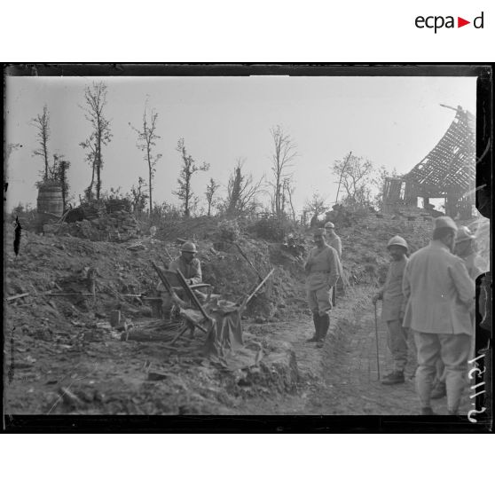Méharicourt (Somme). Soldats dans les ruines.