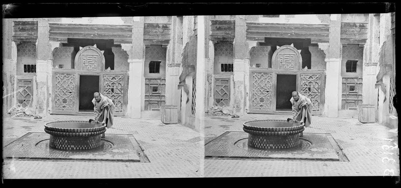 Meknès, dans la cour d’une medersa. [légende d’origine]