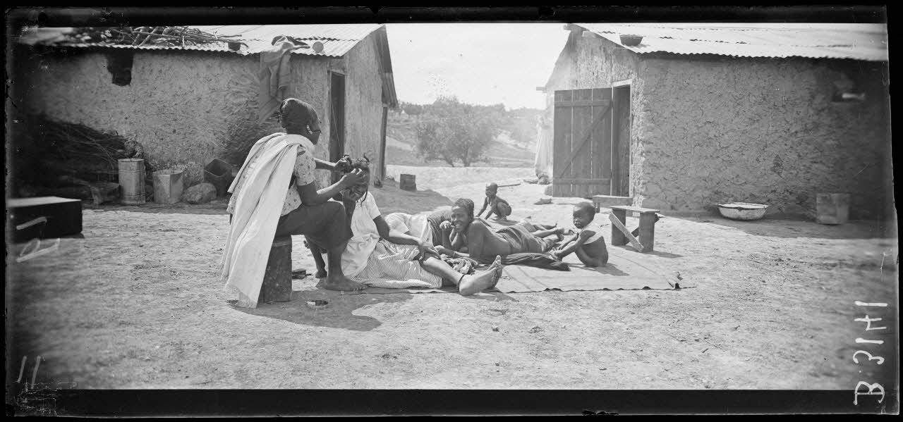 Meknès, le camp des femmes sénégalaises, famille sénégalaise, les soins de la chevelure.
