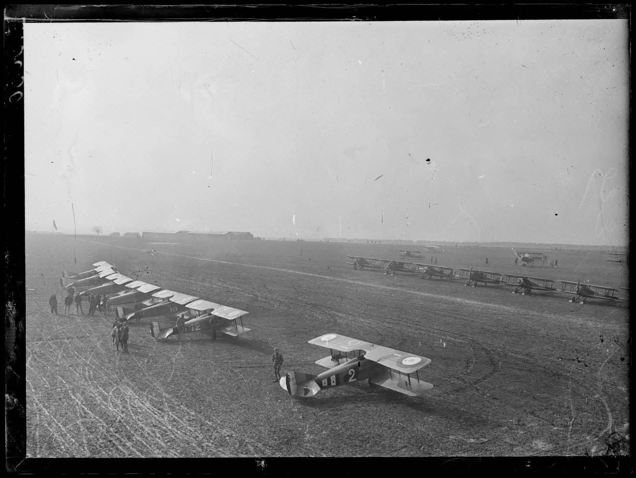 Villeneuve. Marne. Camp d'aviation. Avions prêts au départ.