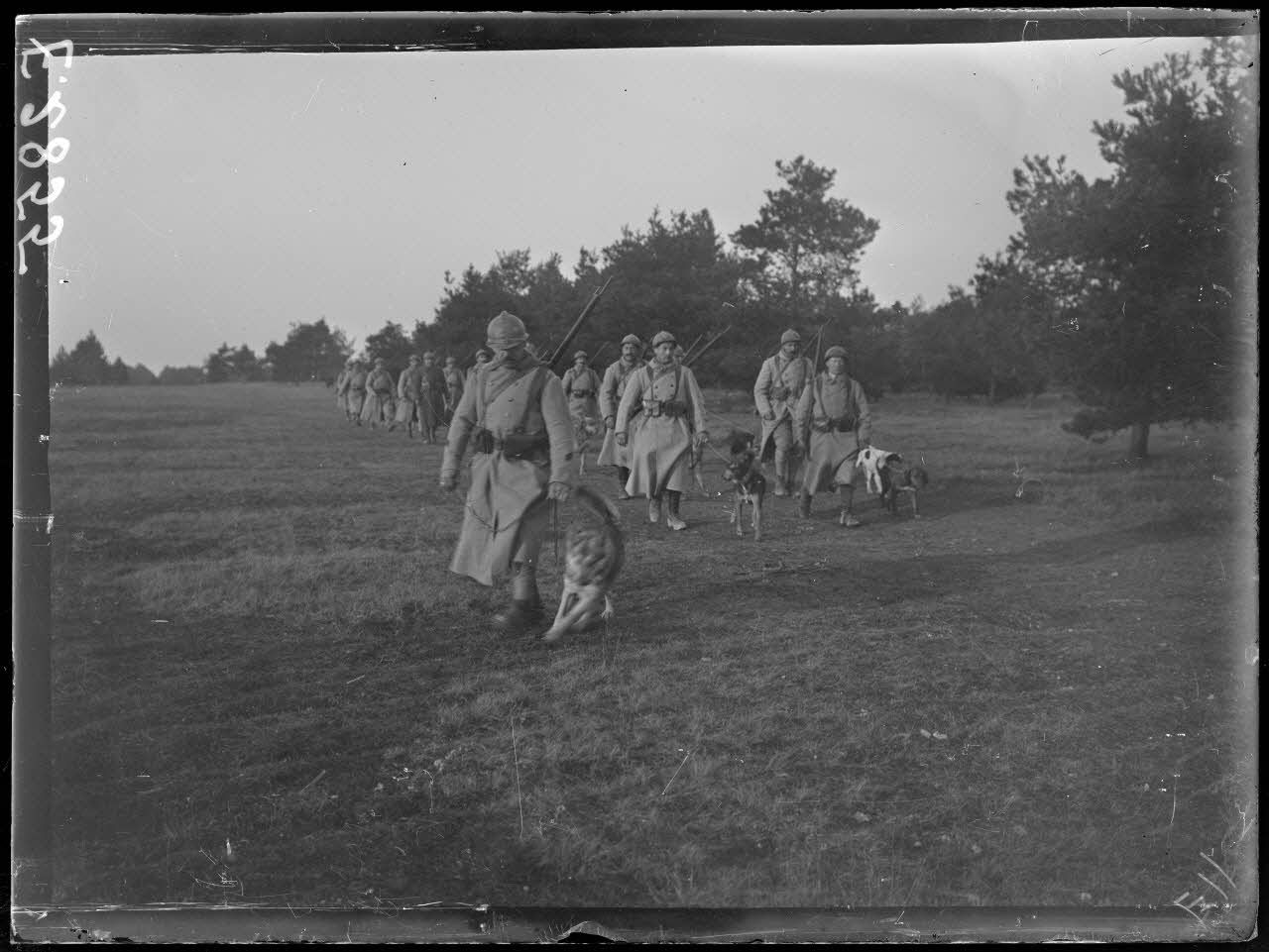 Melette. Marne. Chenil militaire. Promenade des chiens. [légende d'origine]