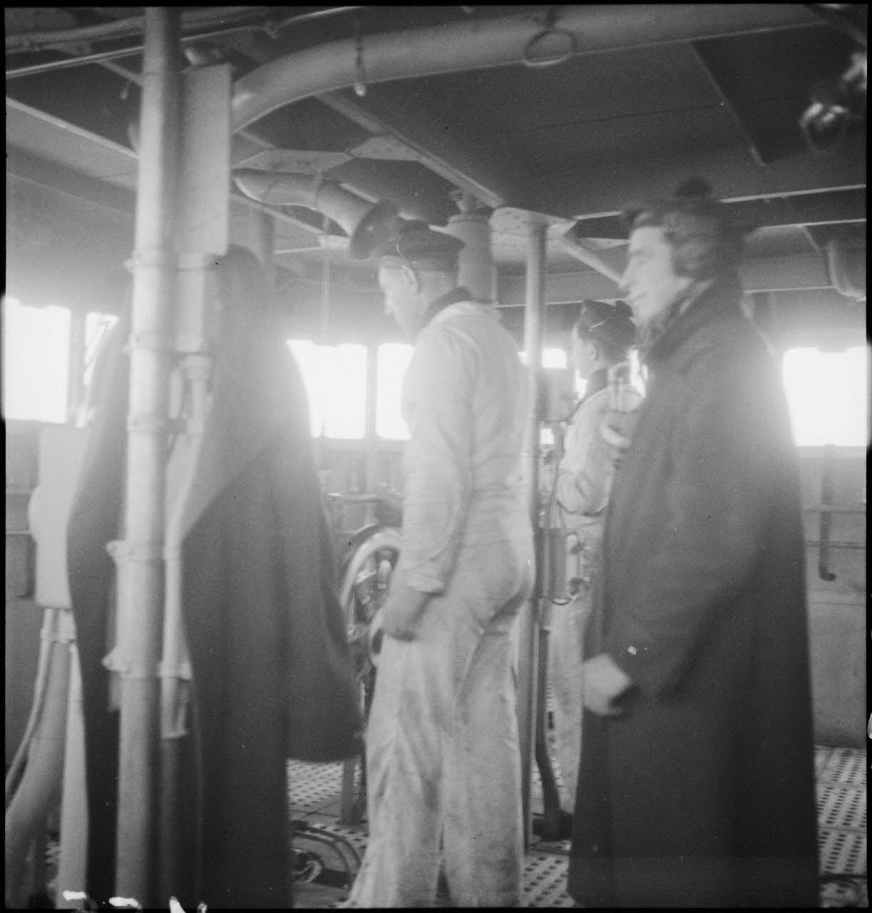 Membres d'équipage à leur poste au blockhaus du contre-torpilleur Le Malin.