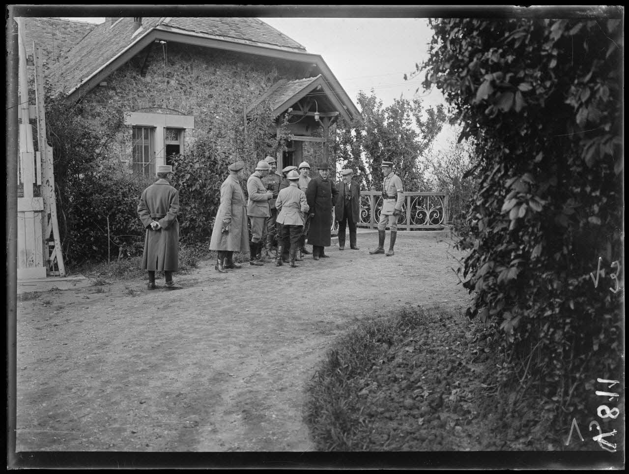- A Châlons-sur-Marne, (Marne, 26/05/1916, V 768) un immeuble a été anéanti lors d'un bombardement aérien allemand opéré dans la nuit du 19 au 20 mai 1916. La délégation russe, menée par le vice-président de la Douma M. Protopopoff, sort du quartier général de la 4e armée commandé par le général Gouraud. Elle visite également les ateliers de camouflage (V 788).