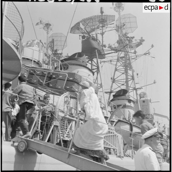 Mers el-Kébir. La population civile montant à bord de l'escorteur "Châteaurenault" (D606).